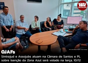 Sintrajud e Assojubs atuam na Câmara de Santos e PL sobre isenção da Zona Azul será votado na terça, 10/12
